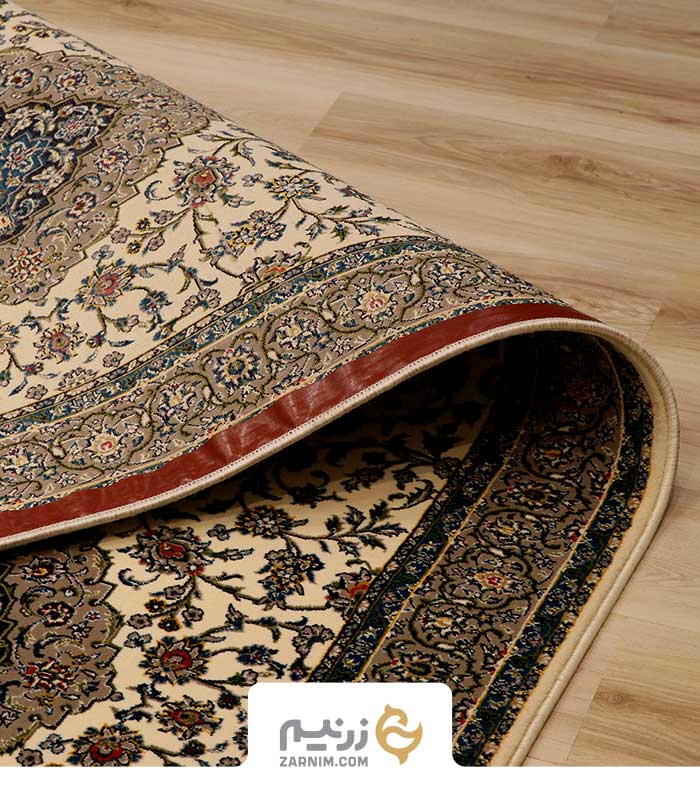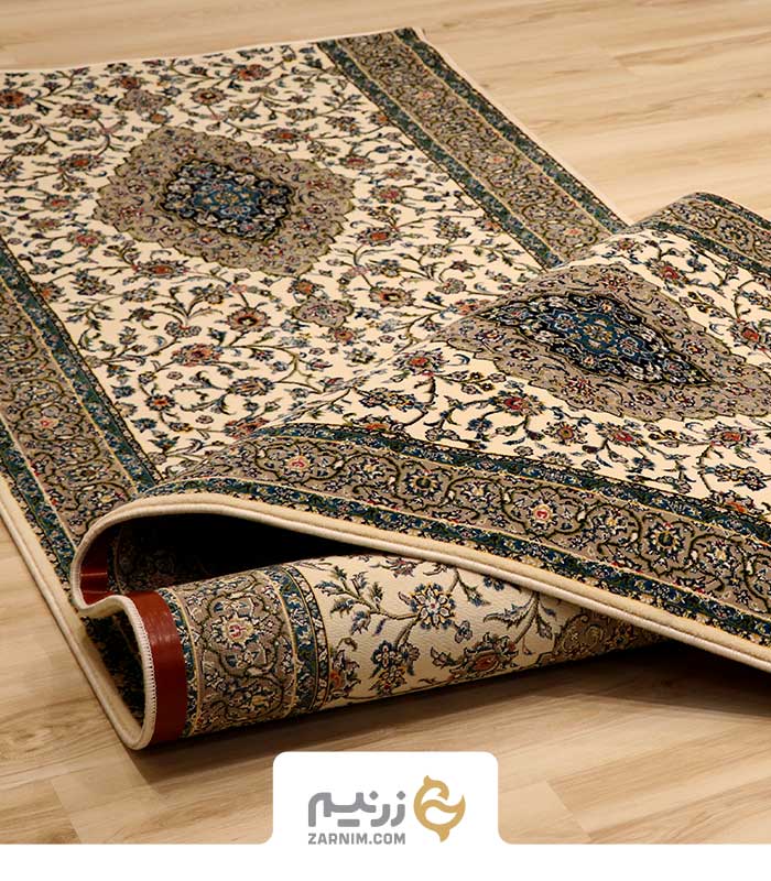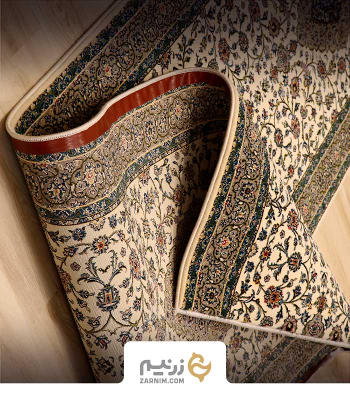 فرش کناره 700 شانه طرح کاشان رنگ‌ کرم