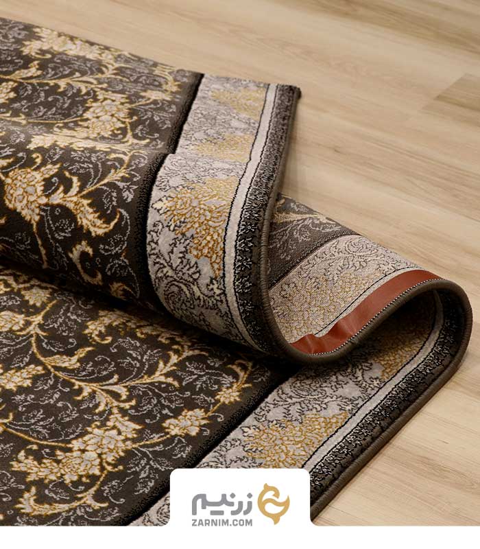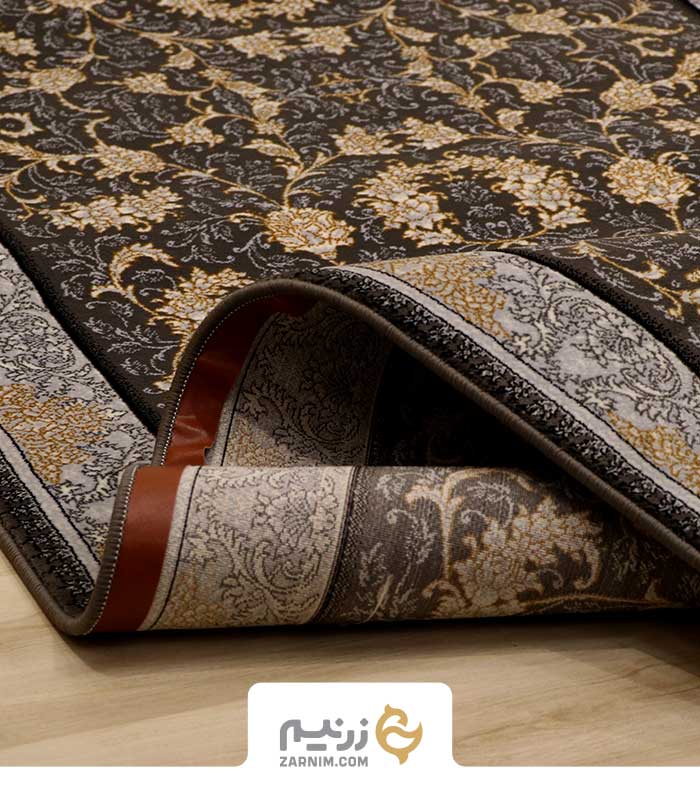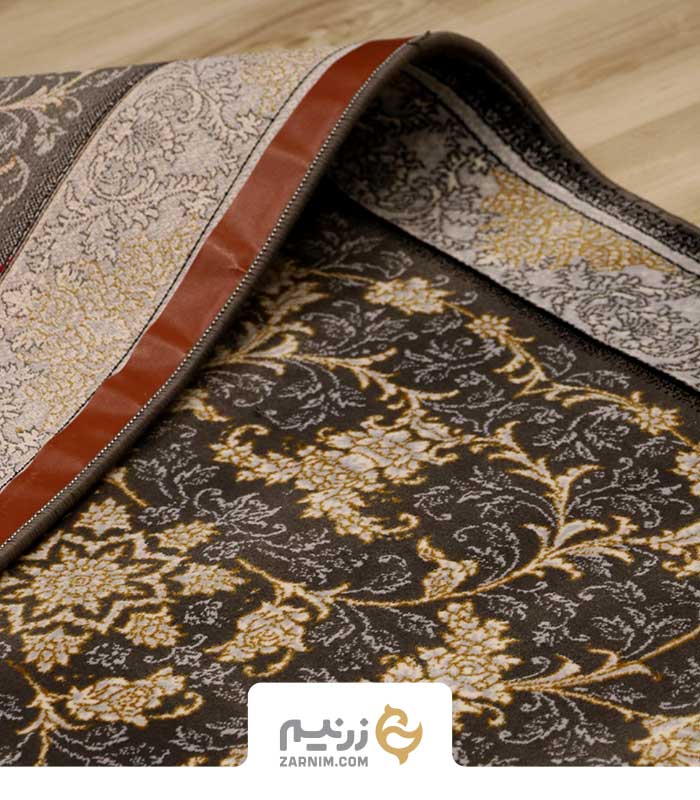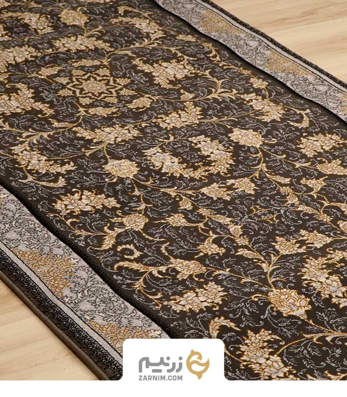 فرش کناره کاشان 700 شانه طرح افشان فروغ رنگ‌ ذغالی