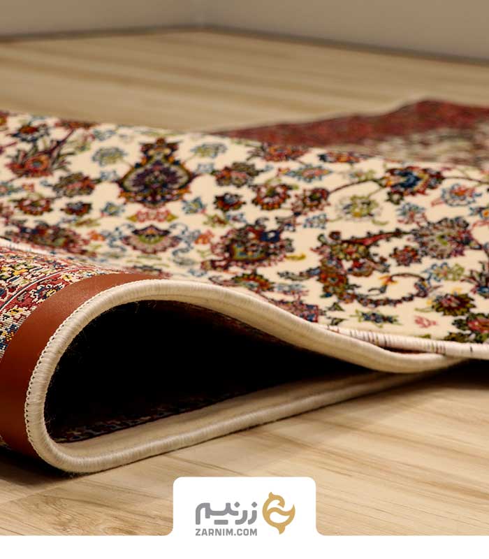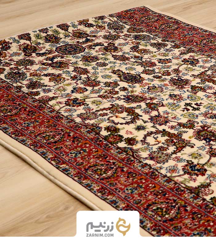 فرش کناره کاشان 700 شانه طرح افشان گلریز رنگ‌ کرم