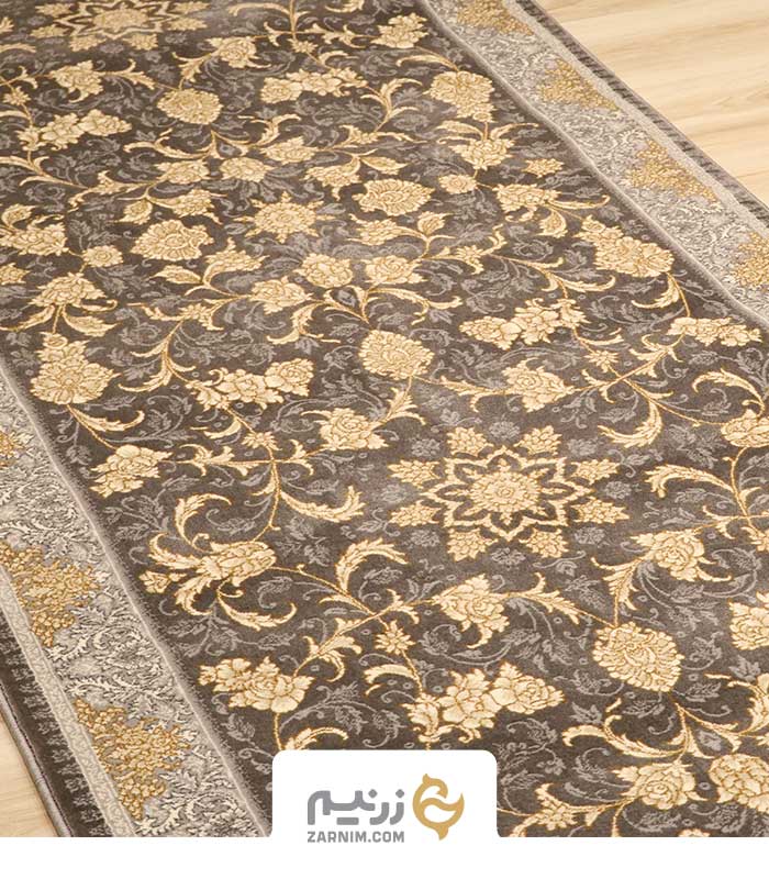 فرش کناره کاشان 700 شانه طرح افشان نگار رنگ‌ ذغالی