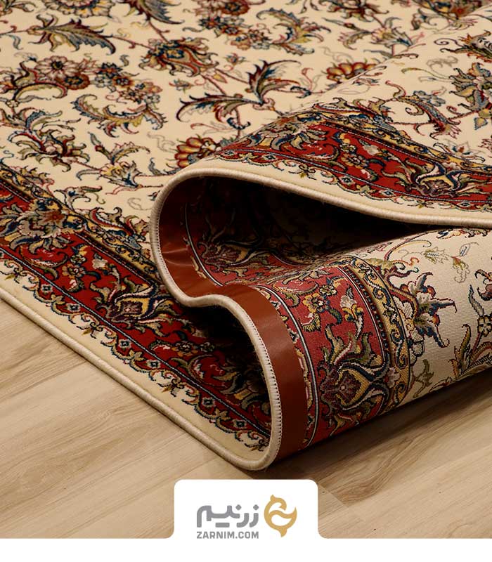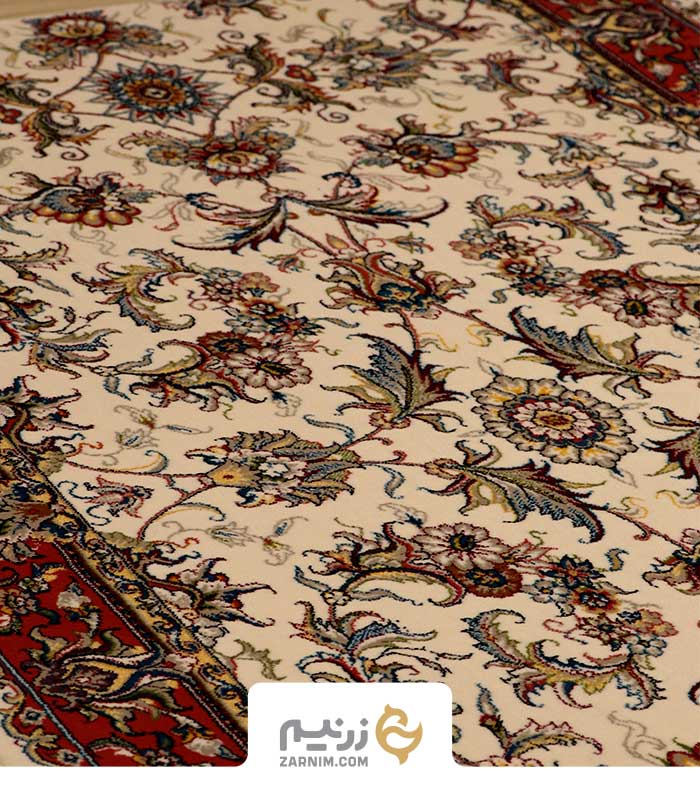 فرش کناره کاشان 700 شانه طرح افشان صبا رنگ‌ کرم