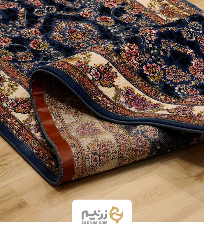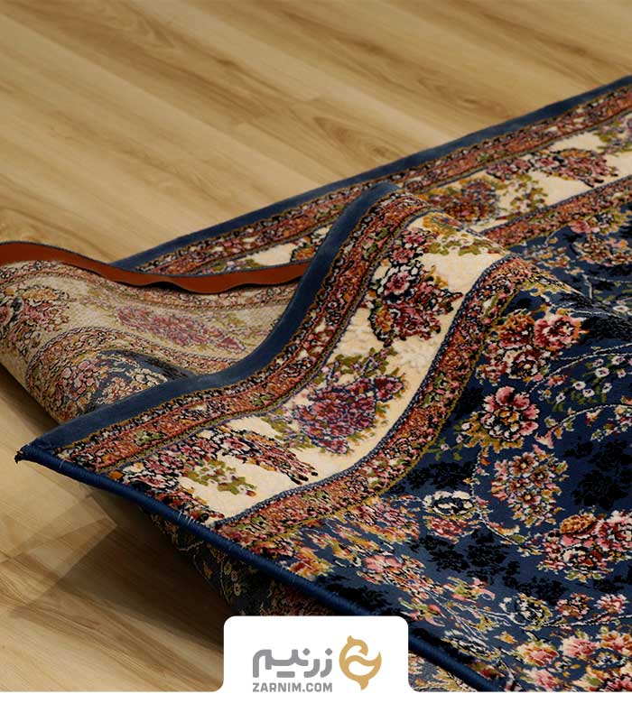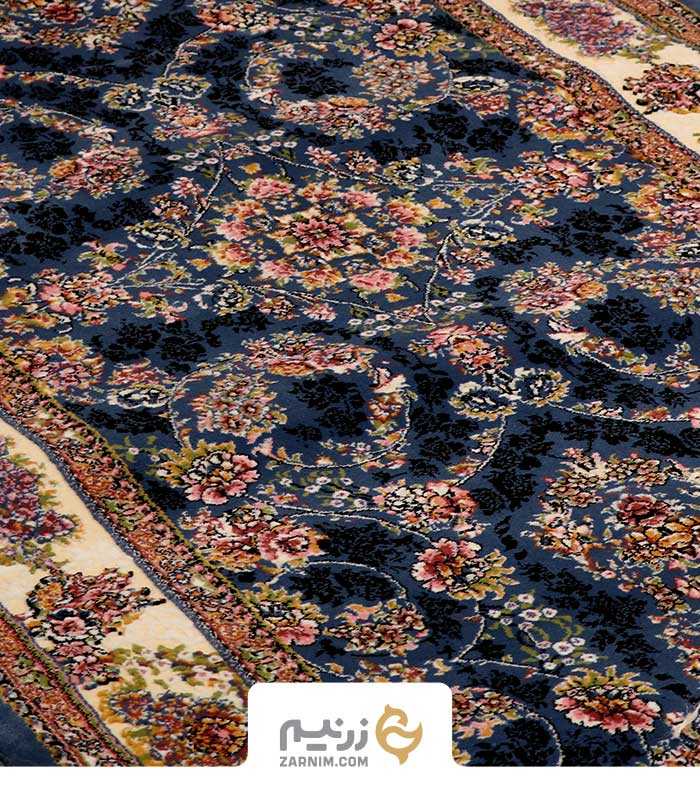فرش کناره کاشان 700 شانه طرح شاهان برجسته رنگ‌ آبی